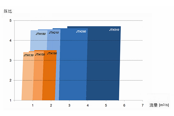 > Offering pressure ratio as high as 4.7, and turbocharging efficiencies up to 67% with wide flow range;